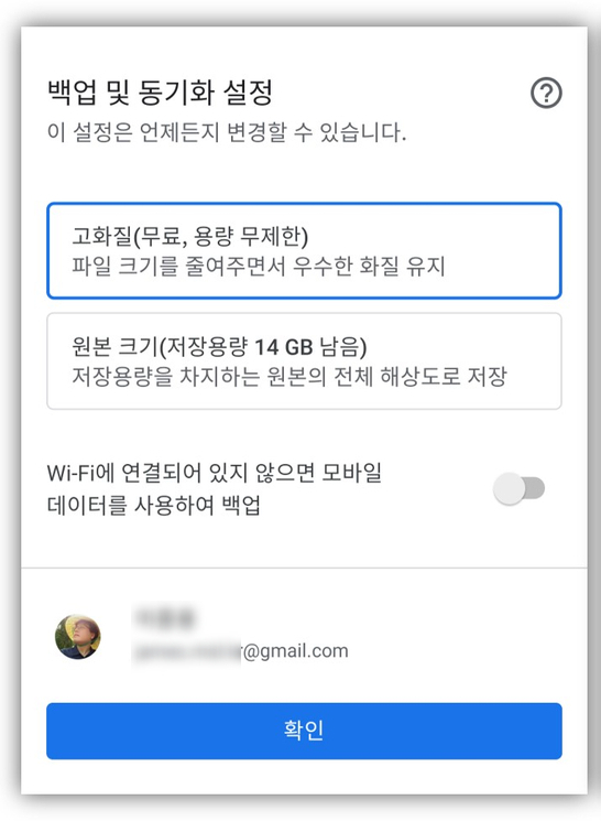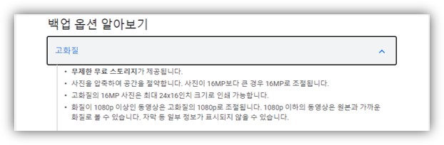 여기에, 스마트폰 앱으로의 구글 포토 백업 설정을 보면 이하와 같이 되어 있다.