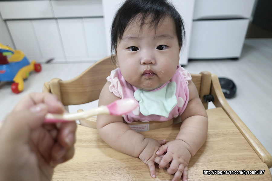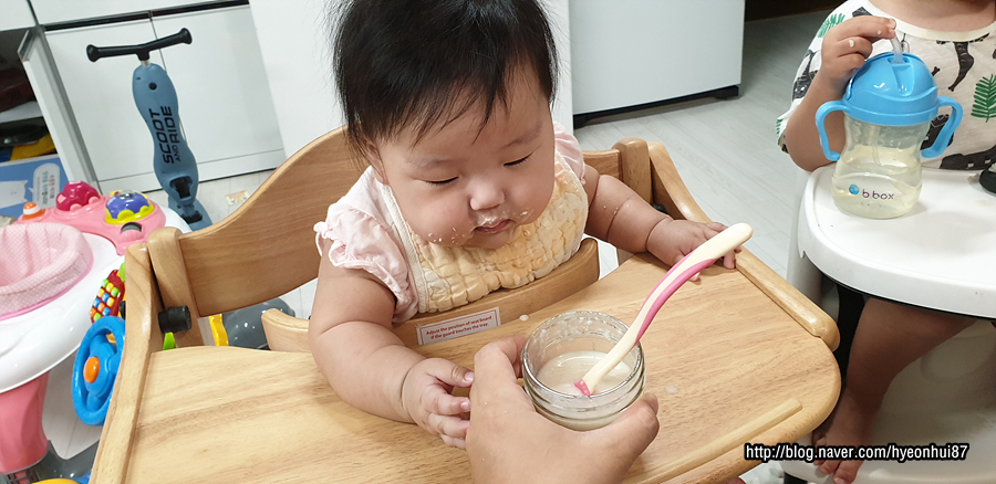 역시 우리 딸, 오빠 더 잘 먹더라고요 두 번째가 네 번 먹는 동안 첫 번째는 한 번 먹는 거야그러니까 두 번째가 다 먹는 동안 첫 번째는 반 겨우 먹더라구요.;;