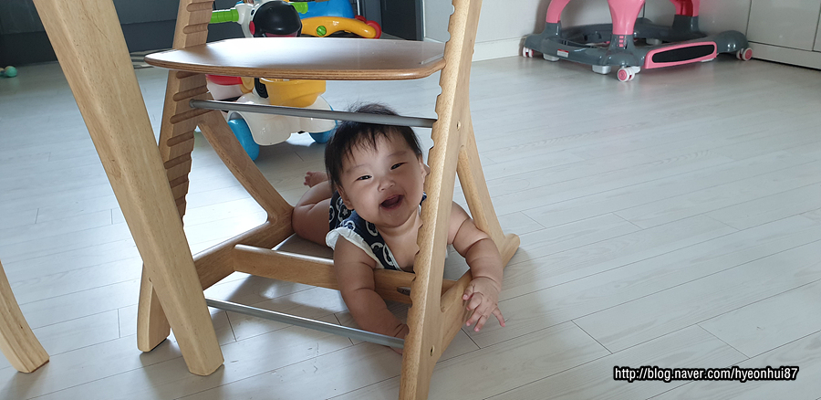 우리 아기도 아기 의자가 마음에 들었는지 매일 기어가서 저렇게 잡고 놀더라구요!