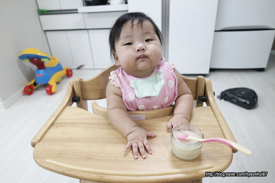 이유식을 먹일 때가 되다 점보의자 꺼내야지~ 턱받이를 꺼내야지~ 주변에 손수건과 휴지를 세팅해야지~ 이유식을 전자레인지에 갖다줘야지. 동선이 너무 길어서 너무 불편하고 준비할것도 많고, 또 앉아서 먹이면 저 허리도 아파요ㅠㅠ