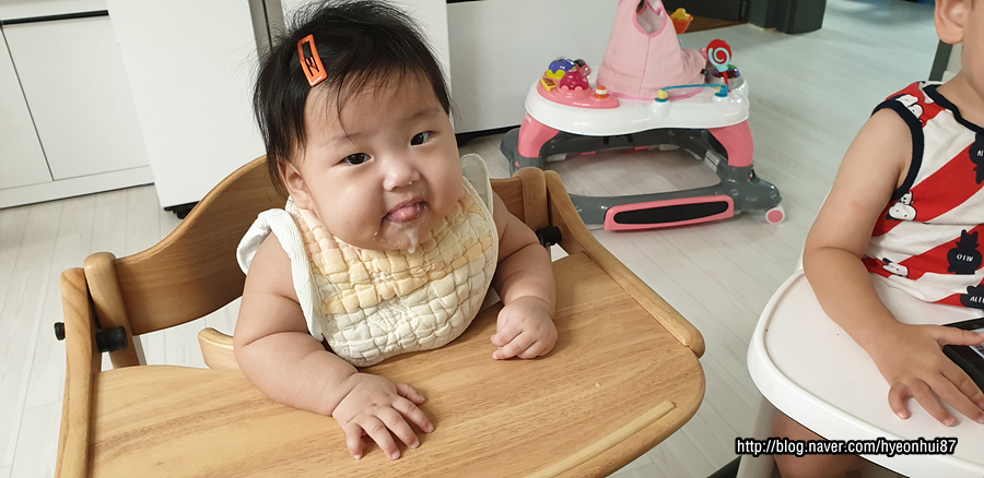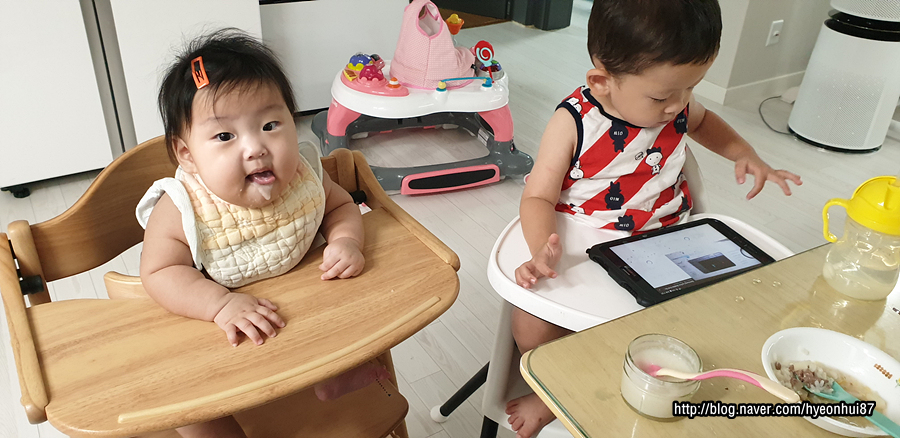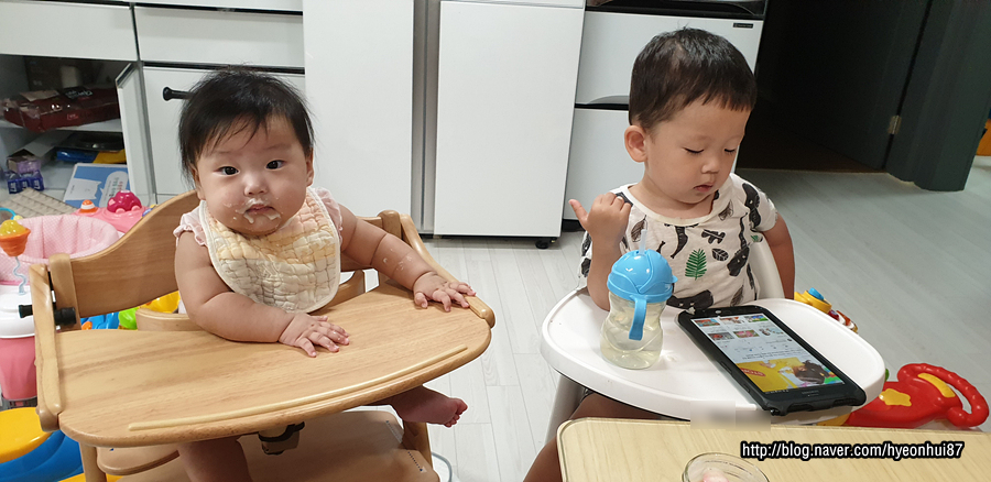 그리고 다음 날은 처음이랑 같이 식사를 하기로 했어요. 흐흐흐 맏딸이 정말... 먹지 않는 아기라서 밥을 먹이는 것이 너무 오래 걸려서 둘째아들과 함께 먹이면 제 시간이 절약될 것 같아서 시험해 보았습니다.쿠쿠쿠쿠