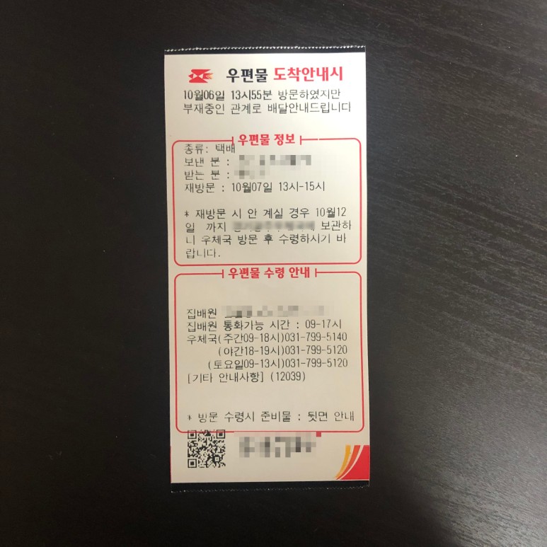 두 번째도 받지 못할 경우 우체국에서 약 일주일 동안 보관할 예정이니 우체국을 방문해주세요 :D