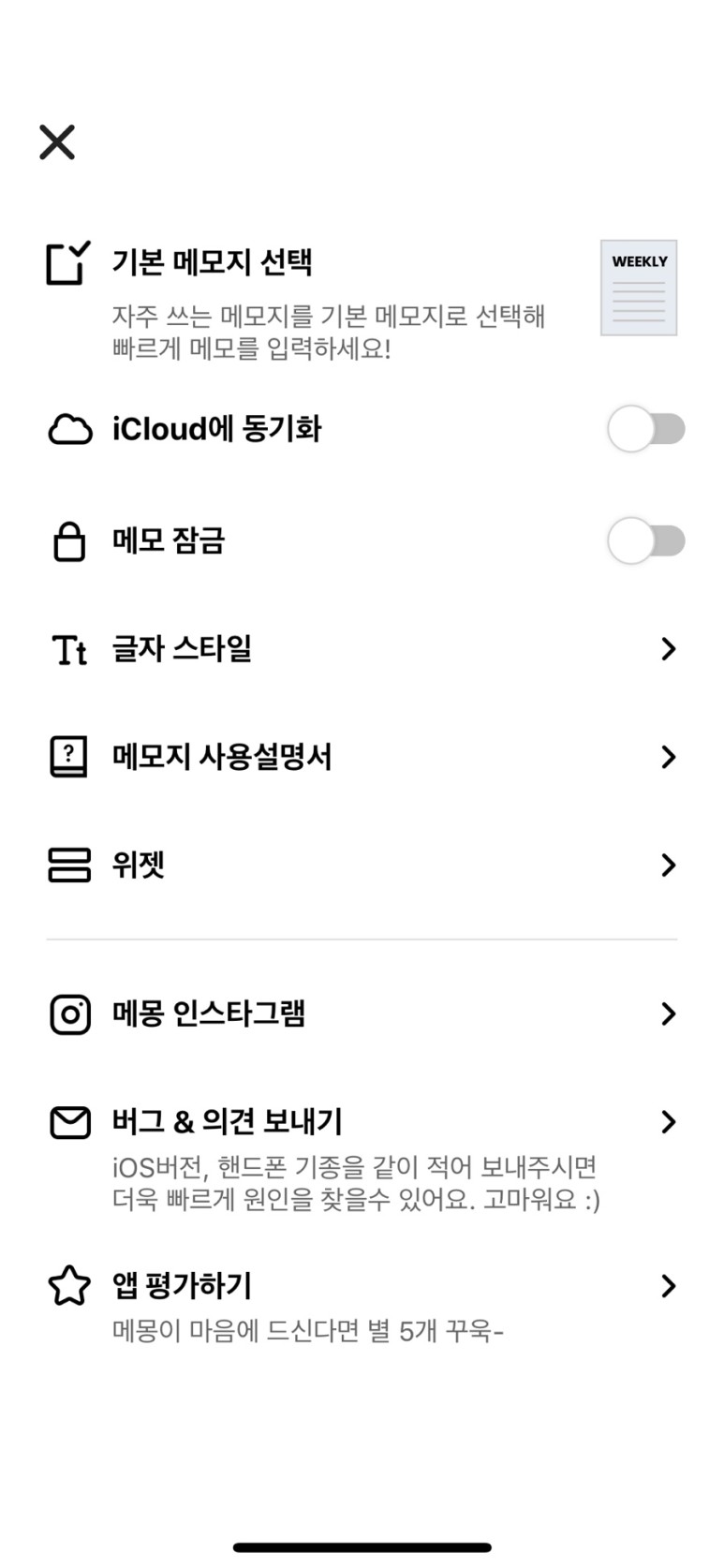 메모지는 12가지가 있어 피드백도 빠르고 업데이트도 자주 하는 편 좋은 기능이 자주 추가되는 사람이 의견을 내는 것으로 업데이트된다 (좋은)