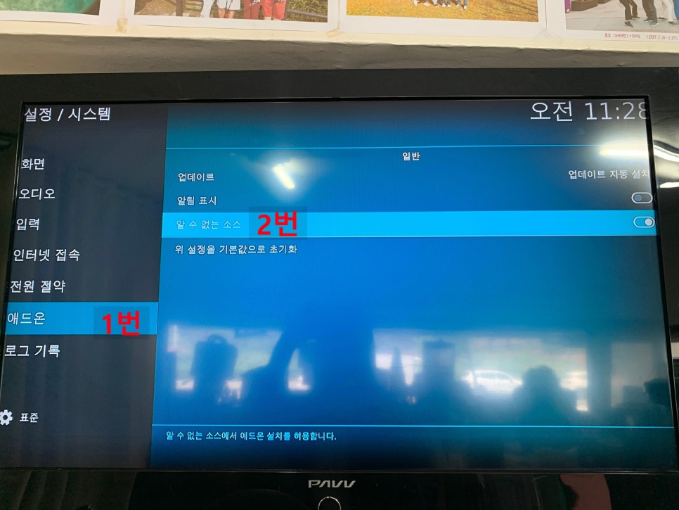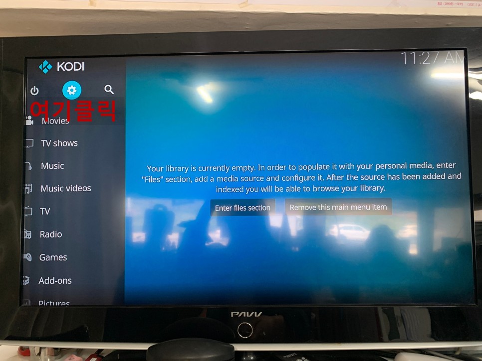 이걸로 마지막 단계에요!! 또한 KODI의 첫 화면에 나와 비디오를 클릭해 줍니다.