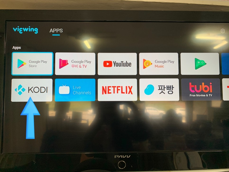 구글 스토어에서 #kodi 앱을 설치하세요.핸드폰으로 어플 다운받듯이 검색하고 설치 누르면 끝!! 설치가 완료되면 이렇게 뷰잉 첫 화면에 kodi 앱이 생겼을 거예요 그럼 kodi앱 다운로드 완료!! 간단하지?