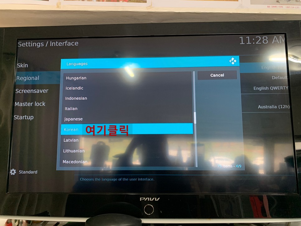다음 regional에서 language를 선택합니다. 다음 밑에 내려가서 korean을 찾아서 누르면 완료!! 한글로 쓰니까 달라지네요. 너무 쉽죠? 이제 본격적으로 #실시간으로 TV를 다운받도록 하겠습니다
