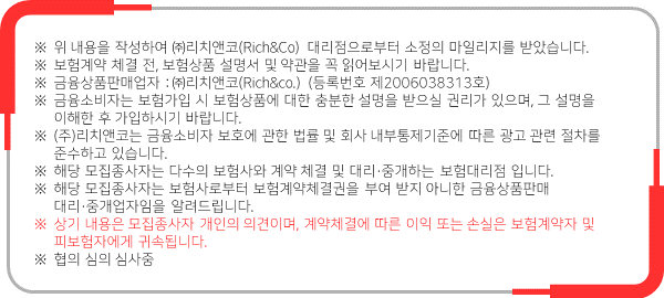 이때 가입한 보험상품과 보험사, 가입자의 성별, 연령, 건강상태 등에 따라 적용되는 내용과 보험료가 다르기 때문에 반드시 본인에게 유리한 조건과 방법으로 부족한 부분을 보완해 주시기 바랍니다.