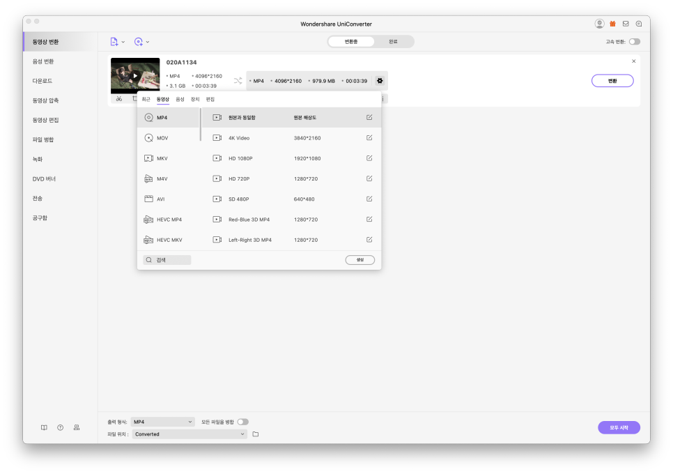 MP4, MOV, MKV, M4V, A VI 등 우리가 필요로 하는 다양한 포맷으로 변환할 수 있으므로 내가 사용하고자 하는 플랫폼에서 지원하는 동영상 포맷으로 변환하여 이용하시기 바랍니다. 영상을 변환하기 전에 여러 편집도 가능합니다화질을 변경하거나 화면을 돌리는 것도 가능합니다만. 출력 프리뷰가 가능하기 때문에, 자신이 편집하는 영상이 어떻게 바뀔지를 사전에 알 수 있습니다. 영상컷도 가능합니다.텍스트 입력이나 필터 적용, 여러 영상을 맞추는 과정도 가능합니다. 여러 프로그램이 맡은 역할을 원더쉐어 유니콘 버터 하나로 모두 해결할 수 있는 동영상 올인원 프로그램입니다.
