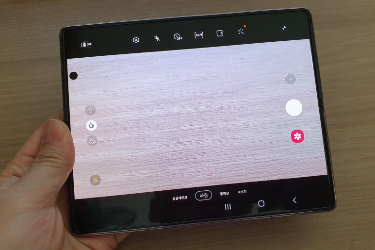 실제로 가장 흥미로운 기능은 바로 후면 카메라를 사용하면서 커버 디스플레이로 자신의 모습을 모니터링할 수 있다는 부분이었다. 물론 S20울트라 모델부터는 4000만화소로 강화됐는데, 후면 카메라를 좋아하는 이유는 더 좋은 사진을 찍을 수 있다는 이유에서다. 방송에 나오는 연예인이나 셀카를 좋아하는 이용자가 자신의 모습이 보이지 않는 후에는 카메라를 이용해 셀카를 찍는 이유가 있다고 생각한다. 이 때문에 이 후면의 메인카메라를 사용하면서 자신의 모습을 볼 수 있다는 사실만으로도 혁신적이라는 느낌이 강하게 들었다.폴드용셀카봉홀더도있으니좀더꼼꼼하게모니터링을하고싶다면상품을구입해보는것도좋겠다.COUPANGcoupa.ng