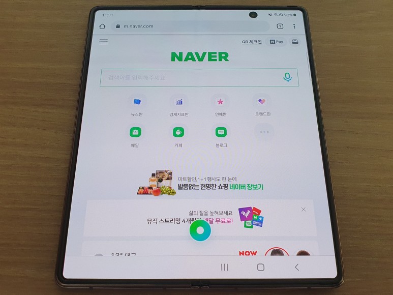일단 기본적인 디스플레이, 그렇다면 커버 디스플레이가 갤럭시 폴드 1세대에 비해 월등히 좋아졌다. 한 세대의 경우, 커버를 모두 사용하지 않는 귀여운 모습을 자랑했다. 이 부분이 나에게 있어서 최대의 불이익이 되었다.반면 갤럭시Z폴드2의 경우 어느 정도의 베젤은 있지만 상당히 넓고 시원한 크기의 디스플레이가 탑재돼 있다.다만 세로로 길쭉해진 만큼 우리가 자주 쓰던 바 형태의 스마트폰보다 쓰기에 불편하다는 느낌을 지울 수 없다. 실제로 갤럭시Z폴드2의 핵심은 커버 디스플레이가 아니라 메인 디스플레이다.직접 손에 들고 화면을 보면 생각보다 만족감을 주는 제품이다. 갤럭시Z폴드2의 메인 디스플레이를 보고 있노라면 지금 사용 중인 갤럭시탭과 헤어질 시간이 멀지 않았나 하는 생각이 들 정도이기 때문이다.웹페이지도 모바일 모드가 아니라 PC 모드로 봐도 불편이 없을 정도여서 스마트폰이나 태블릿PC와 하이브리드 성향을 가진 제품의 색깔을 제대로 확인할 수 있다. 다만 아직 디스플레이의 견고함이 일반 디스플레이만큼은 아니기 때문에 S펜을 쓸 수 있는 갤럭시탭이나 갤럭시노트에 비하면 아쉬운 점은 있다. 폴드 3세대에서 이 부분이 보완되기를 기대한다.